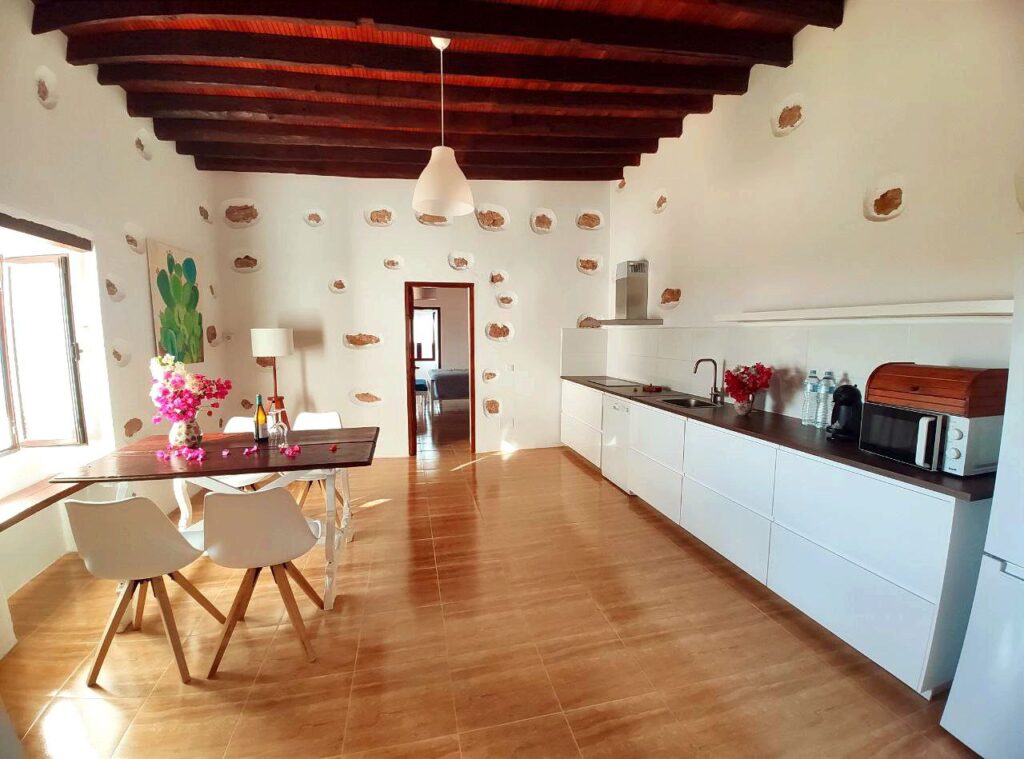 Casa con más de 200 años de antigüedad, con arquitectura típica majorera (piedra y barro), mantiene temperatura fresca en verano y cálida en invierno.